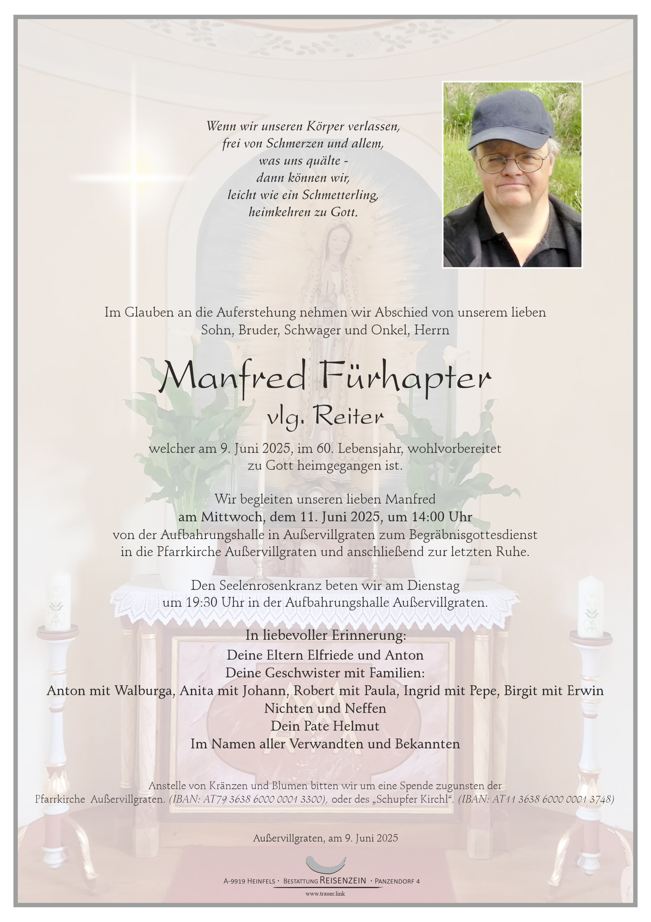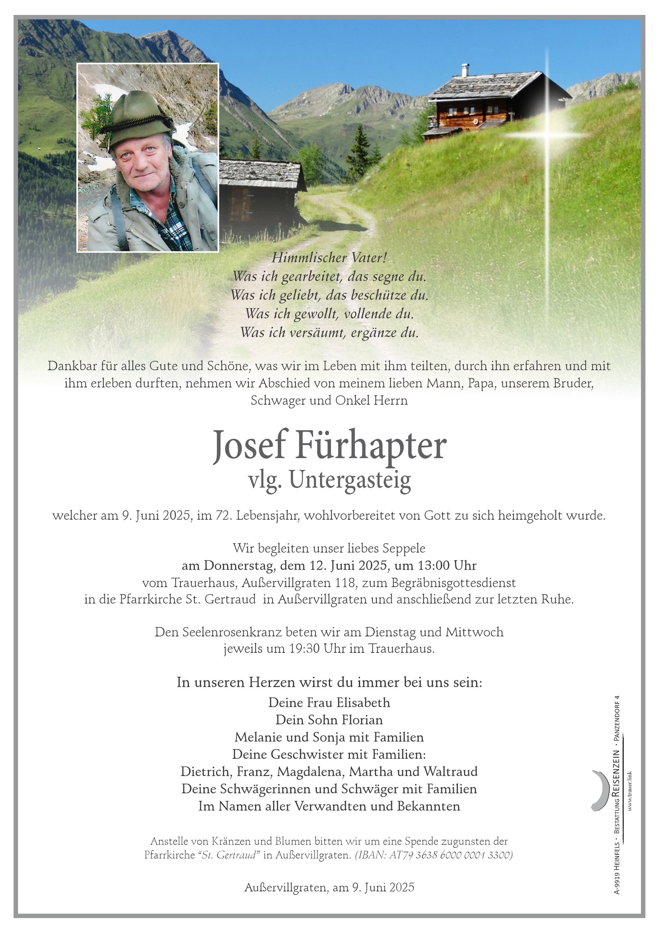 welcher am 26. Juni 2025, im 86. Lebensjahr, nach langer Krankheit, jedoch unerwartet, nach einem arbeitsreichen Leben, wohlvorbereiter und friedlich eingeschlafen ist.